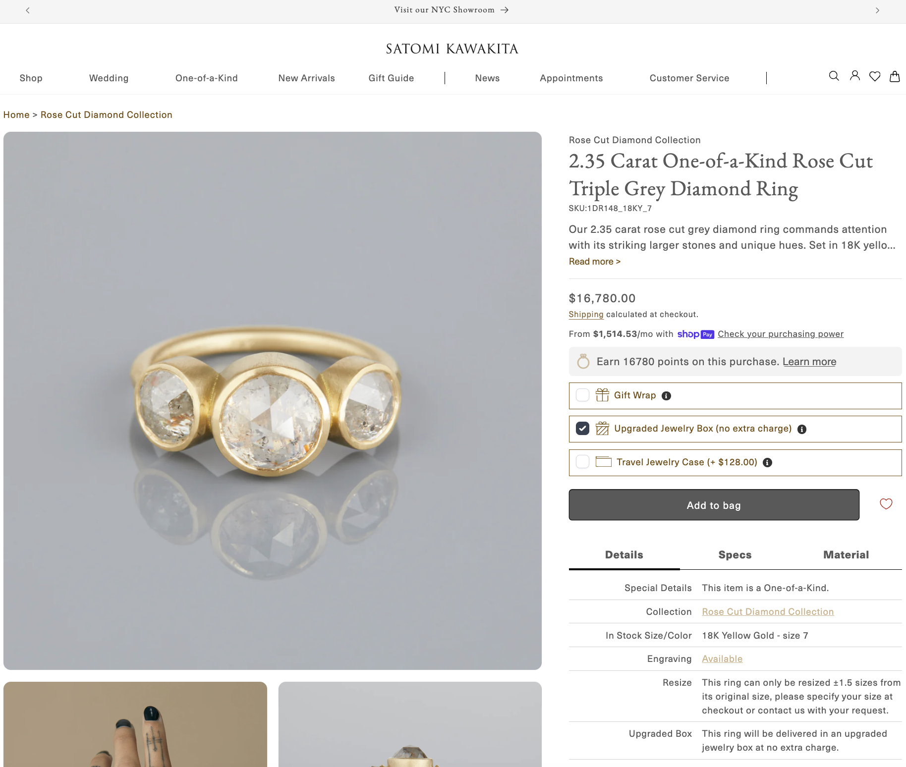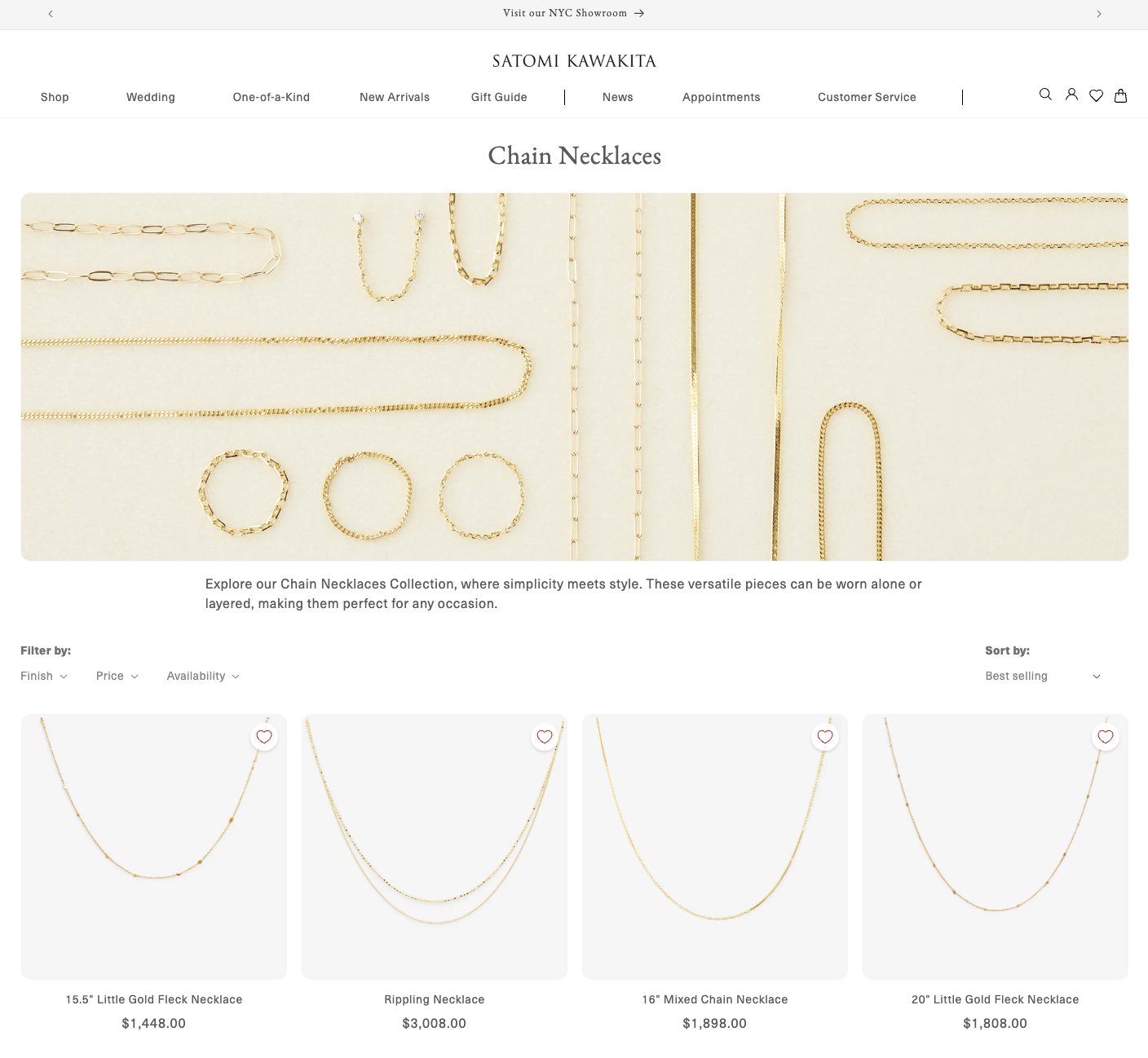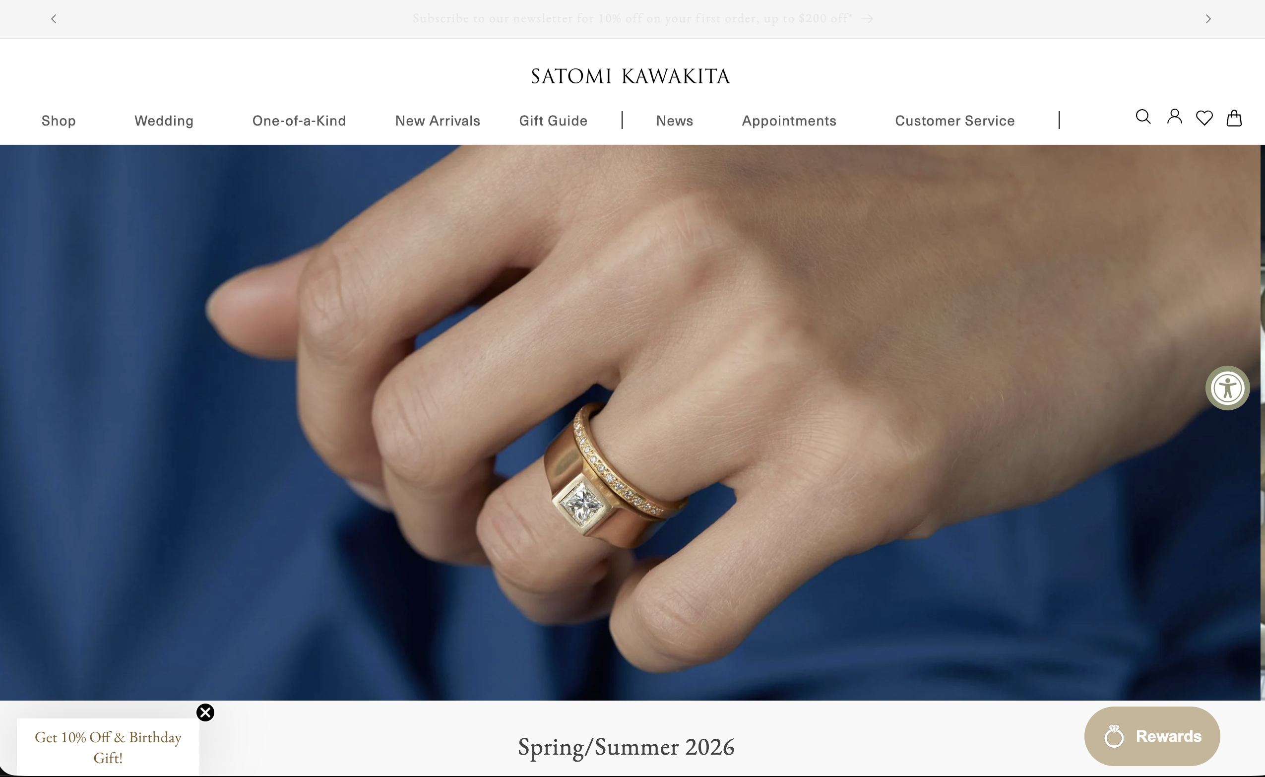 Satomi Kawakita Jewelry is a fine jewelry brand known for its distinct aesthetic and strong presence in the U.S. market. While the brand itself was well established, its digital infrastructure had not kept pace with its growth. The site was operating across both WordPress and Shopify, resulting in a fragmented experience and increasing technical debt over time. As content and functionality evolved, the underlying codebase became difficult to manage and performance began to degrade. The objective was to stabilize the foundation first, then rebuild the experience in a way that supports both the brand's positioning and its day-to-day operations.