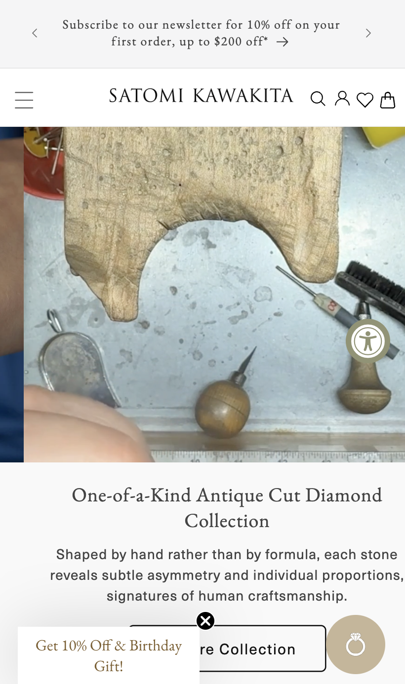 Satomi Kawakita Jewelry is a fine jewelry brand known for its distinct aesthetic and strong presence in the U.S. market. While the brand itself was well established, its digital infrastructure had not kept pace with its growth. The site was operating across both WordPress and Shopify, resulting in a fragmented experience and increasing technical debt over time. As content and functionality evolved, the underlying codebase became difficult to manage and performance began to degrade. The objective was to stabilize the foundation first, then rebuild the experience in a way that supports both the brand's positioning and its day-to-day operations.